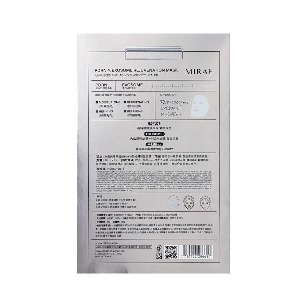 使用方式:於清潔化妝水後,將面膜輕敷於全臉10~15分鐘後即可取下面膜。