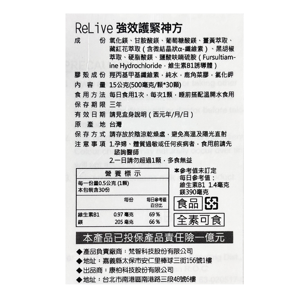 藏紅花萃取、薑黃素萃取、維生素B1衍生物、鎂元素、黑胡椒萃取
